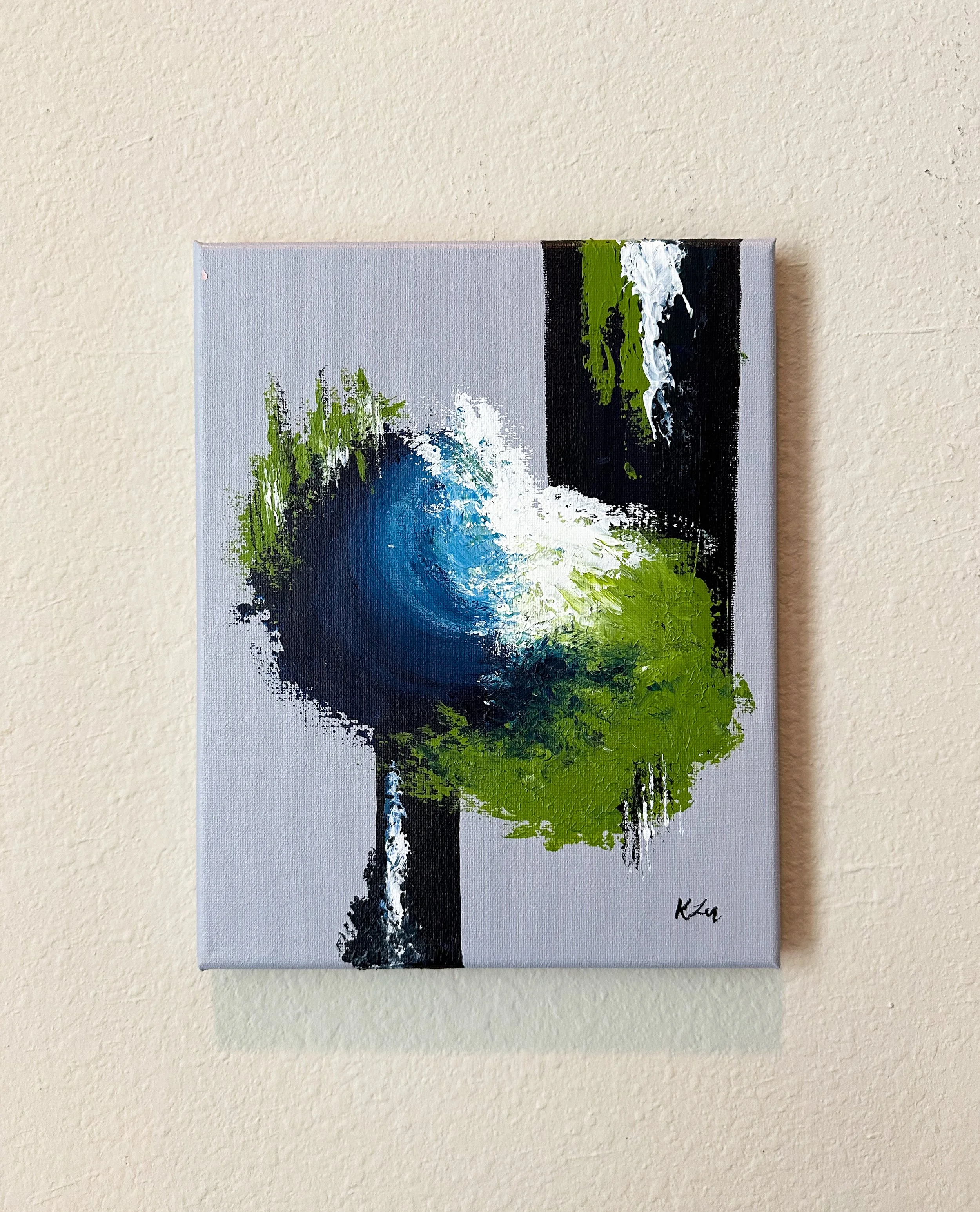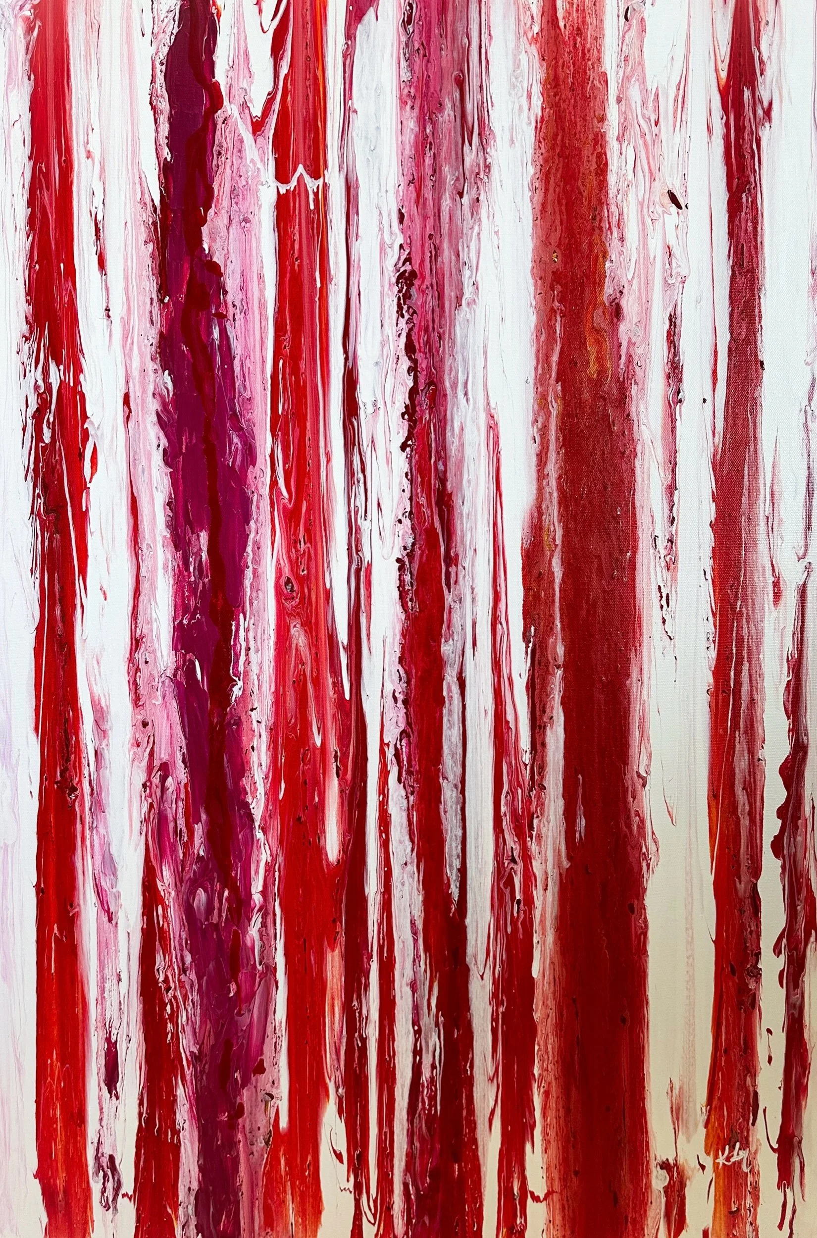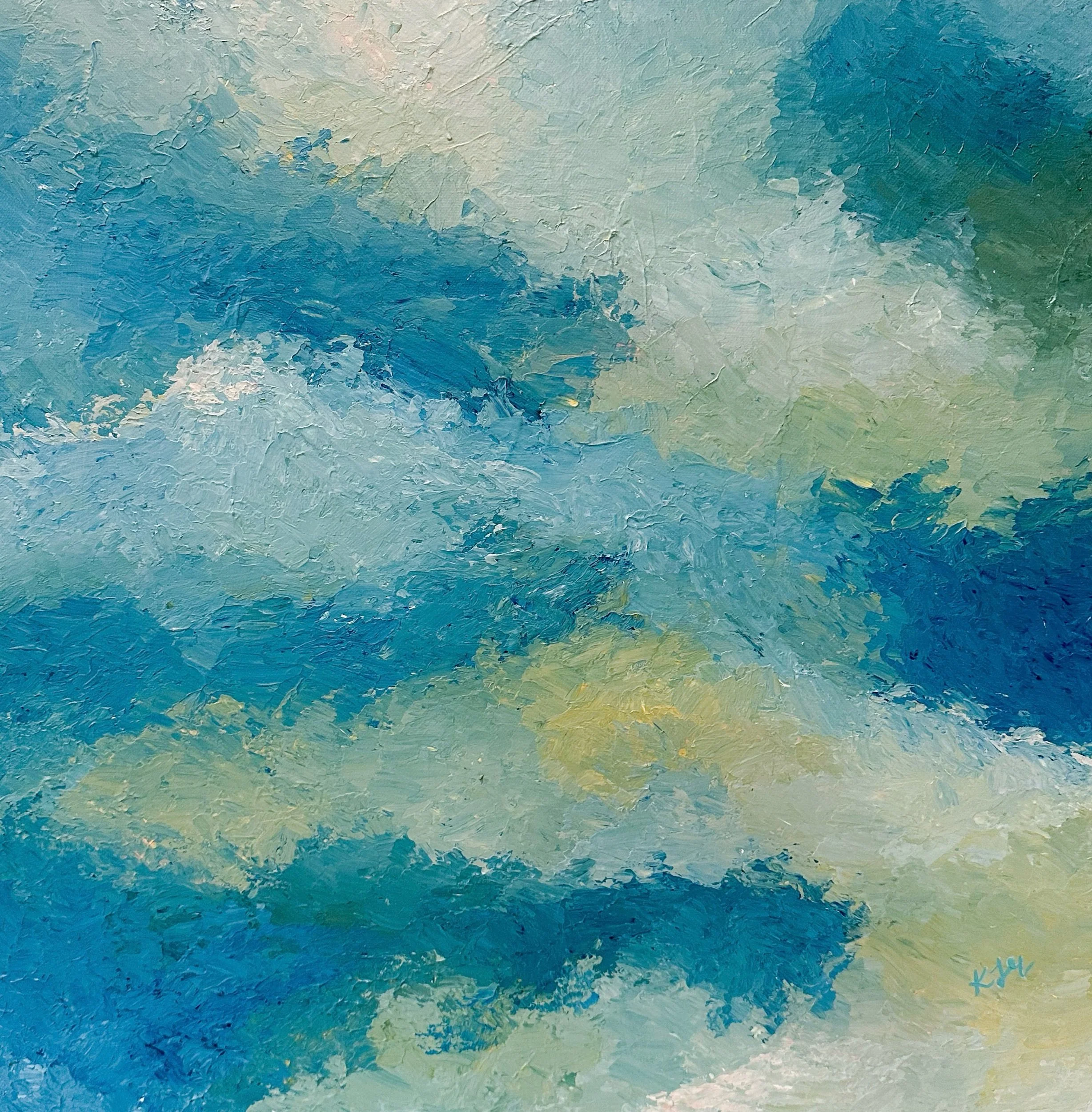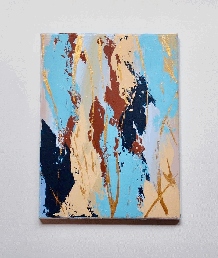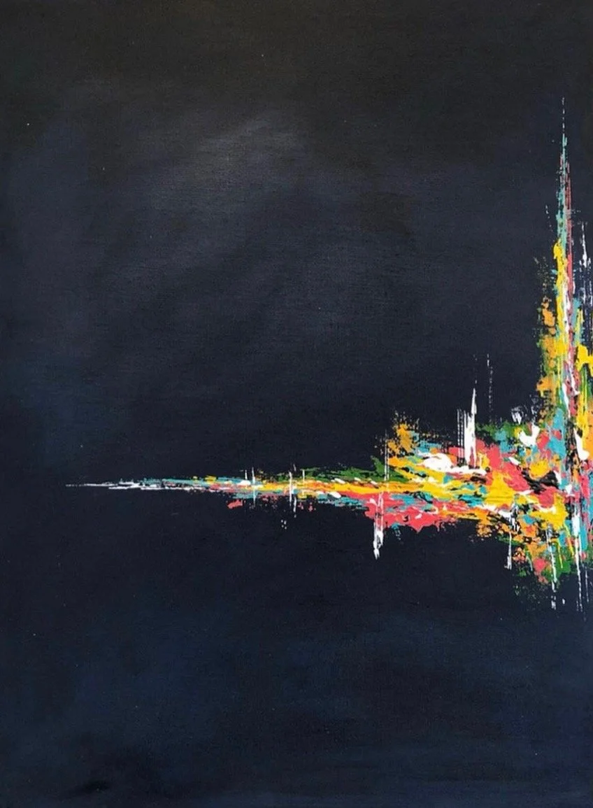 This collection came from a period of creative drought. I had been struggling with finding new ideas that sparked joy and creativity. I grabbed a blank canvas an began to paint with no plan or direction, just to see where my imagination took me. Out of this blank state came a new series that expressed the movement and artistry of color.