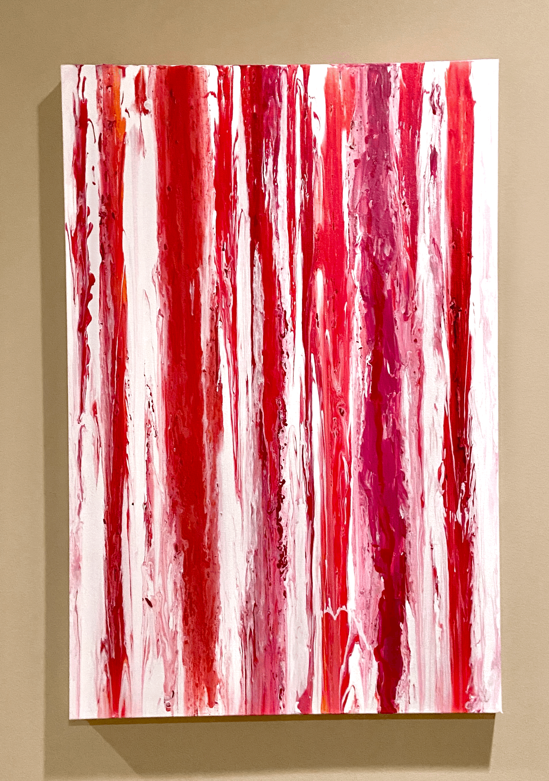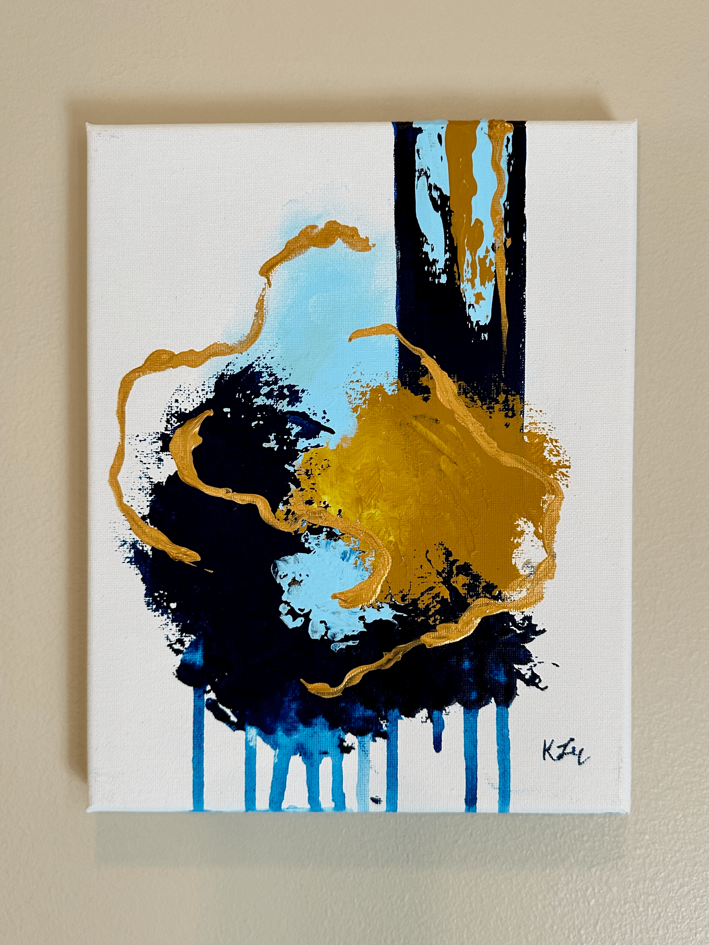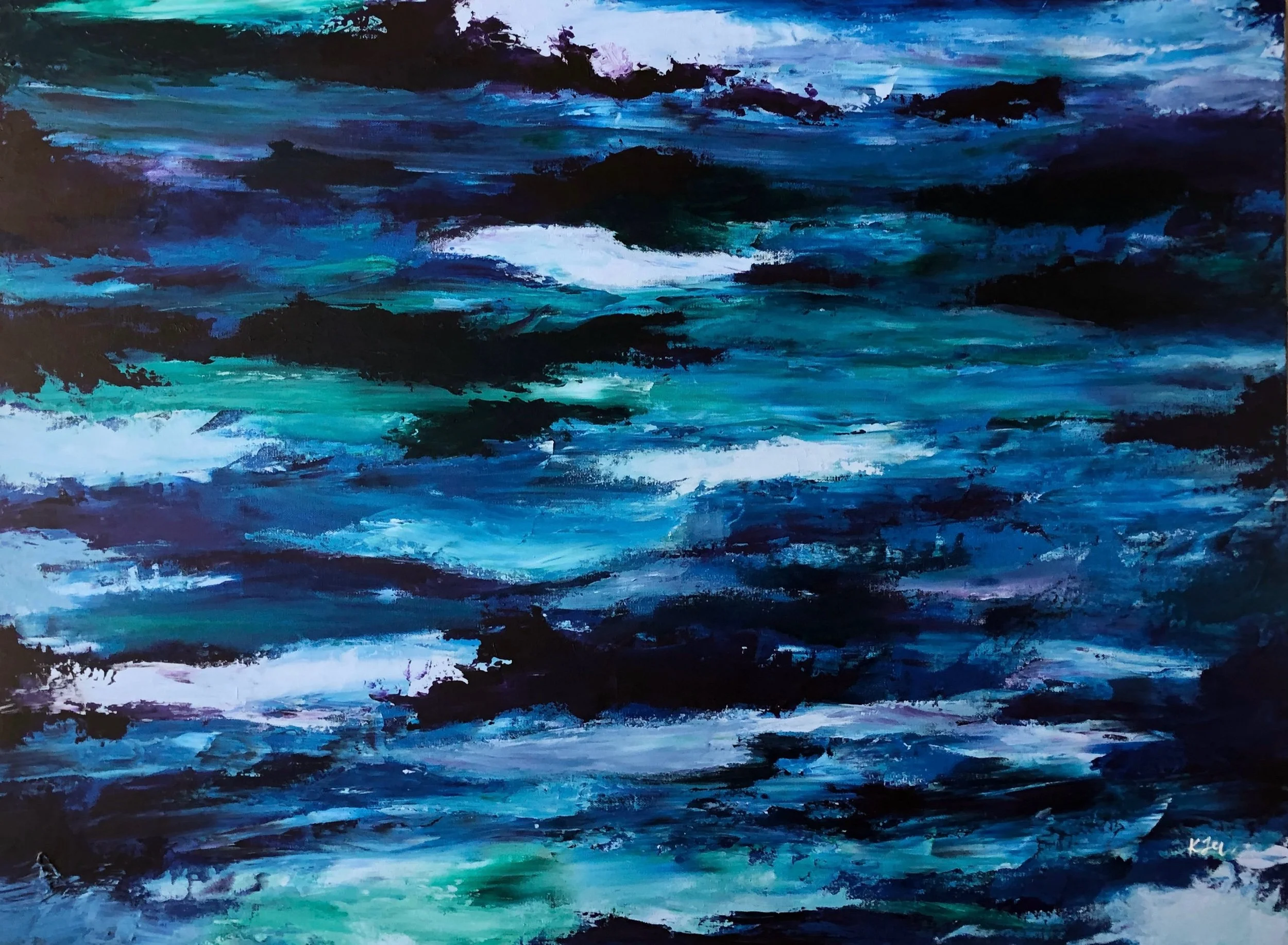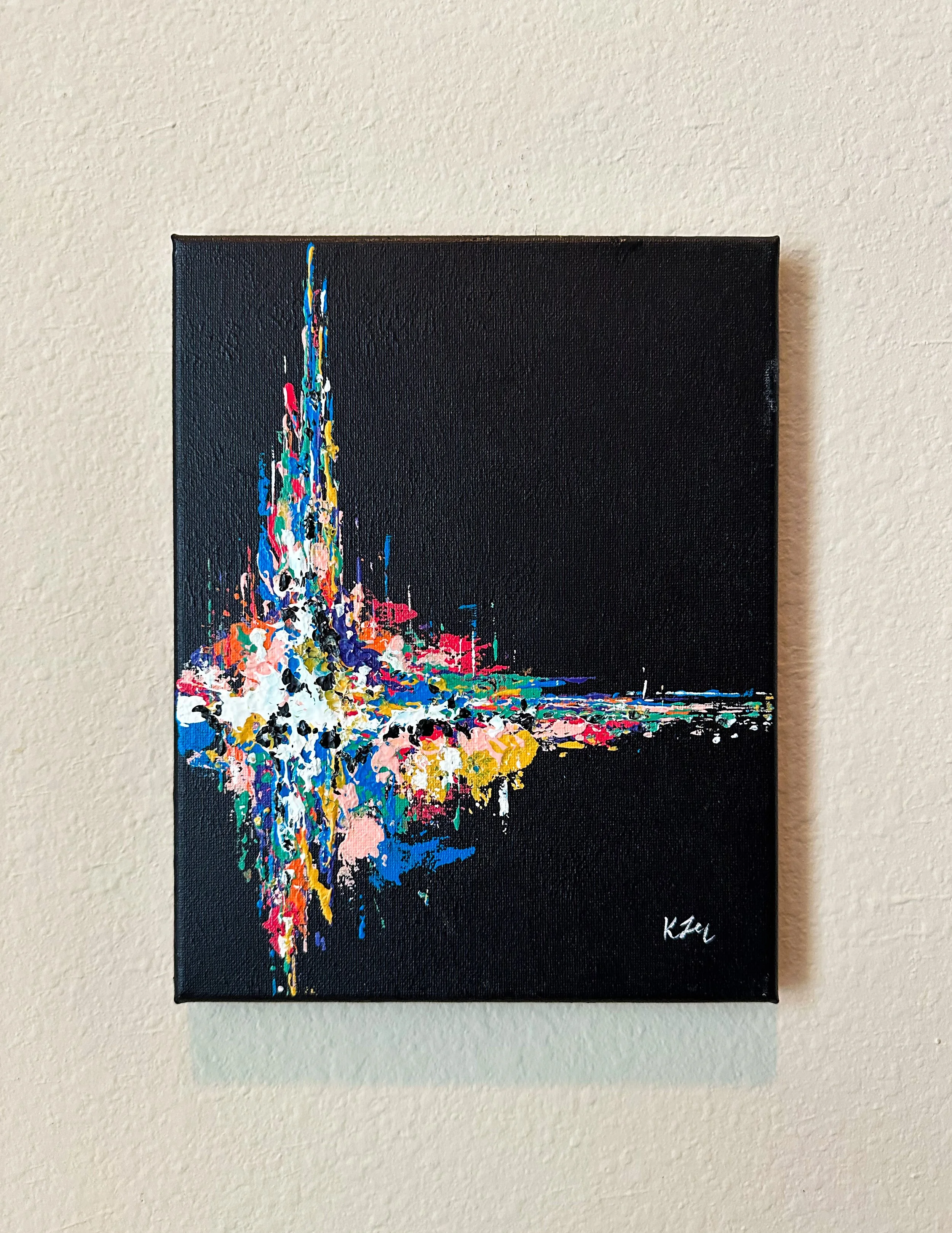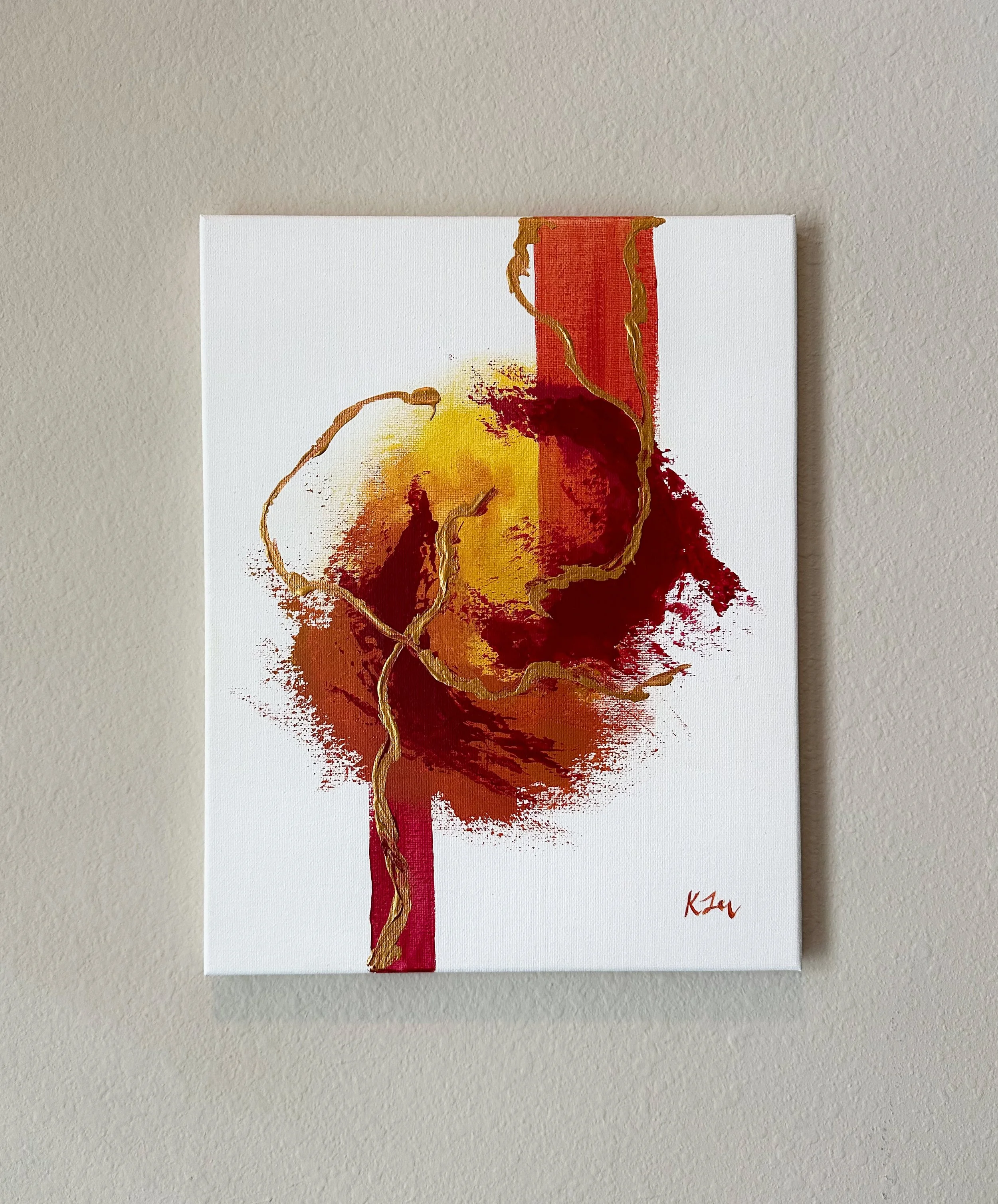 This collection came from a period of creative drought. I had been struggling with finding new ideas that sparked joy and creativity. I grabbed a blank canvas an began to paint with no plan or direction, just to see where my imagination took me. Out of this blank state came a new series that expressed the movement and artistry of color.
